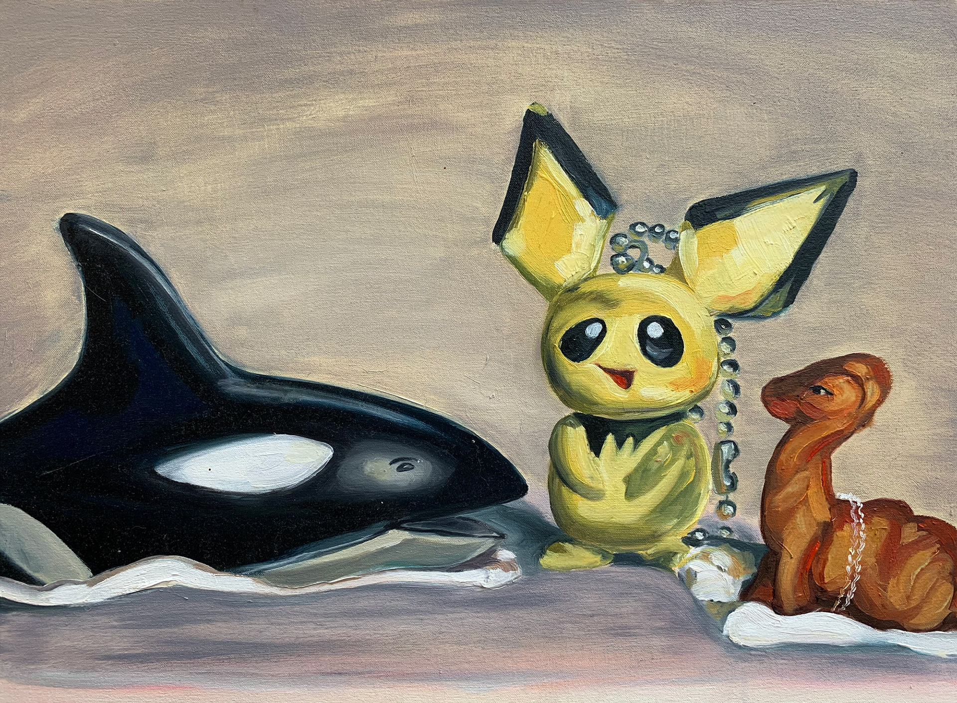 Copies of donation forms from Whose Museum’s early years cover an entire wall, overlaid with paintings depicting parts of the collection. Whose Museum Still Life, a painting of the Orca, Pichu and Camel figurines, was commissioned from the artist Monique Motut-Firth in 2010. At various events over the years, participants have interpreted collection items in drawings and paintings, also adding them to the museum. In keeping with the sentiment of tedious archiving, an empty donation form with the phrase “I hate forms!” written across it is blown up to an exaggerated size. This work on paper was donated to the museum at a collecting event.